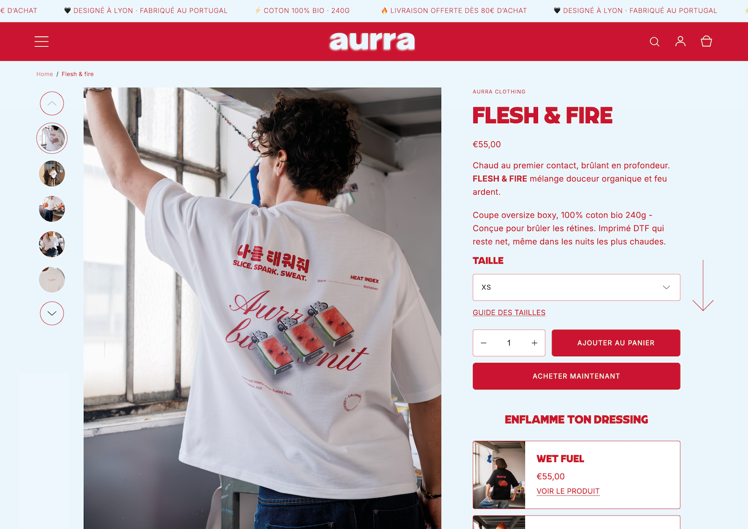 Aurra Clothing est une marque streetwear lyonnaise à l’univers arty et éditorial, qui propose des pièces de qualité, confectionnées au Portugal. L’ambition : créer une marque forte, avec une identité visuelle marquée et une direction artistique cohérente sur l’ensemble de ses supports.