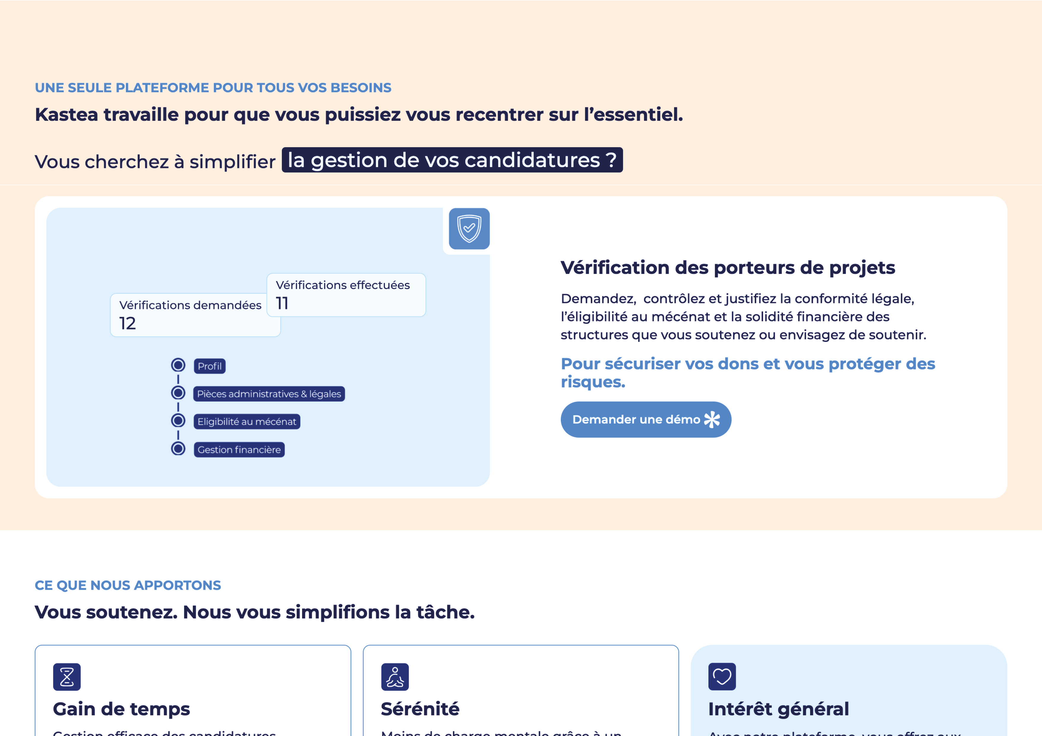 Kastea est une plateforme innovante dédiée aux grands donateurs cherchant à orienter leurs contributions vers des projets qui touchent à la fois le cœur et l’esprit. Grâce à un sourcing soigné, une due diligence complète et un suivi rigoureux des actions, Kastea s’impose comme un intermédiaire de confiance entre générosité et impact réel.